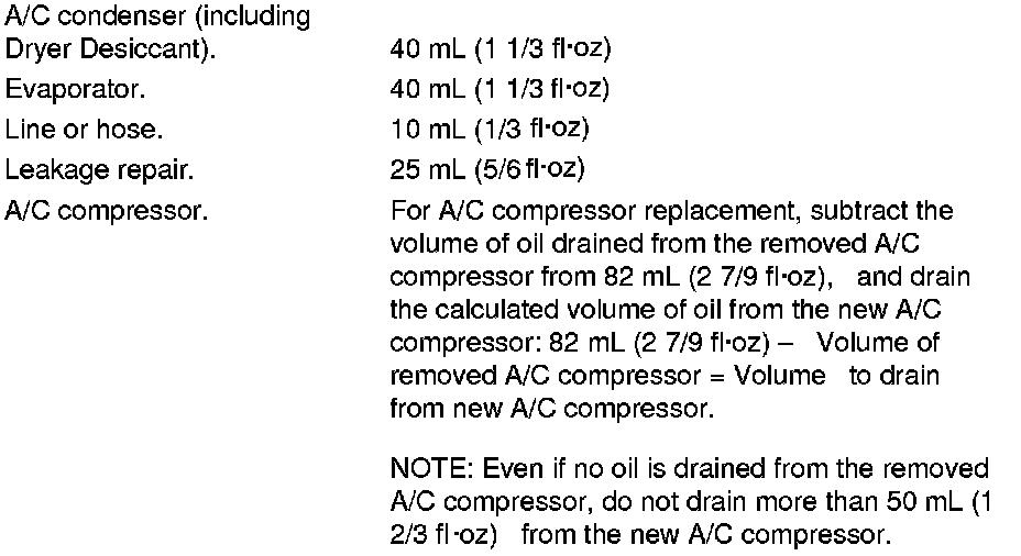Too little oil damages the A/C compressor; too much oil reduces the cooling capacity of the system, and can produce high vent temperatures.