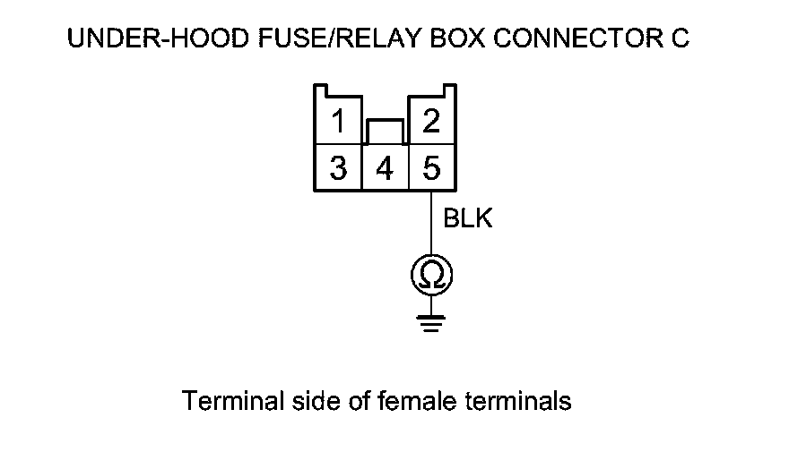 11. Check for continuity between under-hood fuse/relay box connector C (5P) connector terminal No. 5 and body ground.