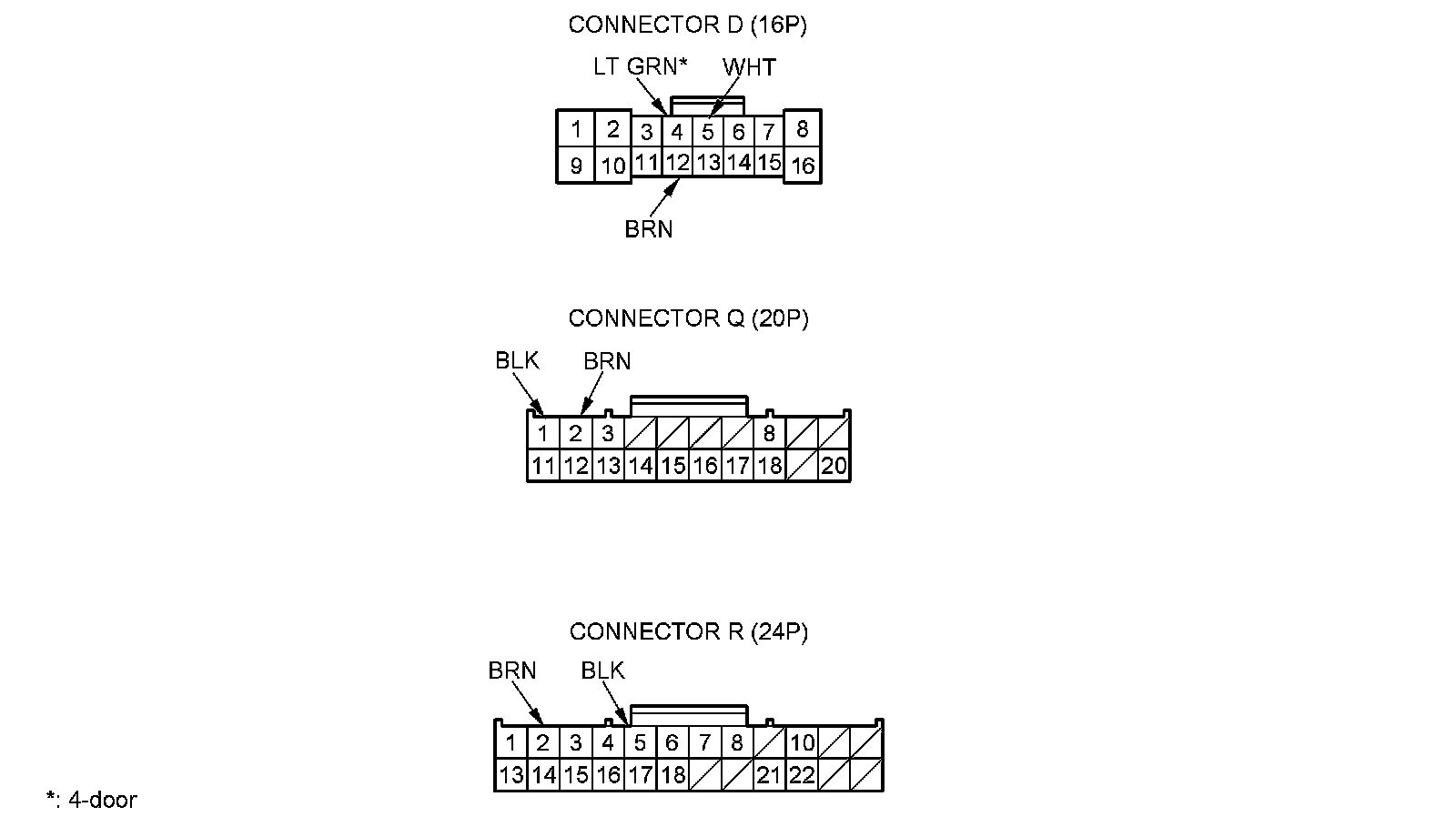 2. Disconnect driver's under-dash fuse/relay box connectors D, Q, and R.