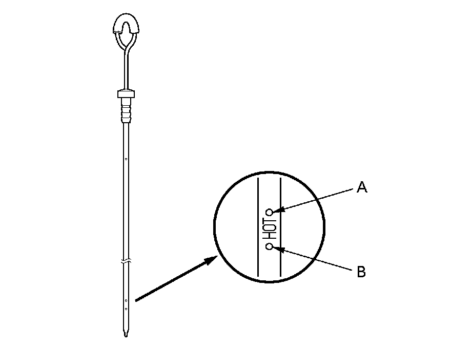 5. Remove the dipstick, and check the ATF level. It should be between the upper mark (A) and the lower mark (B).