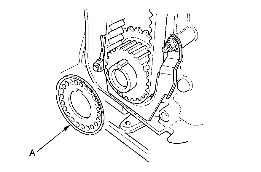 13. Remove the timing belt guide plate (A).
