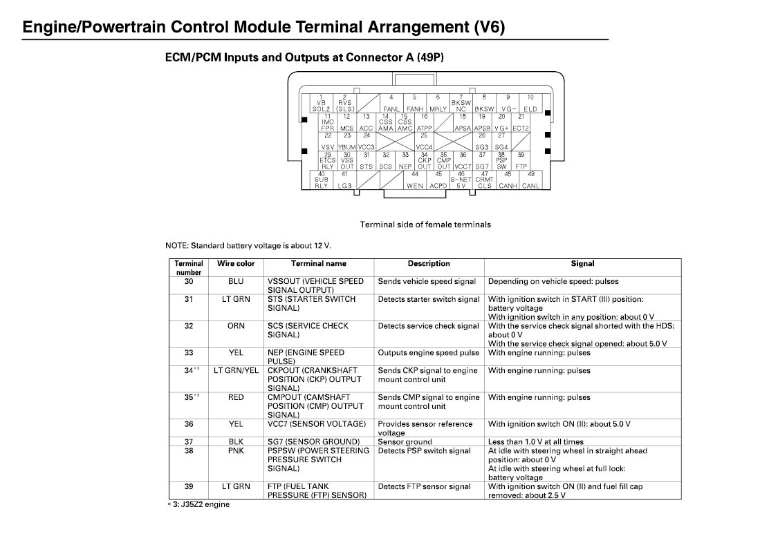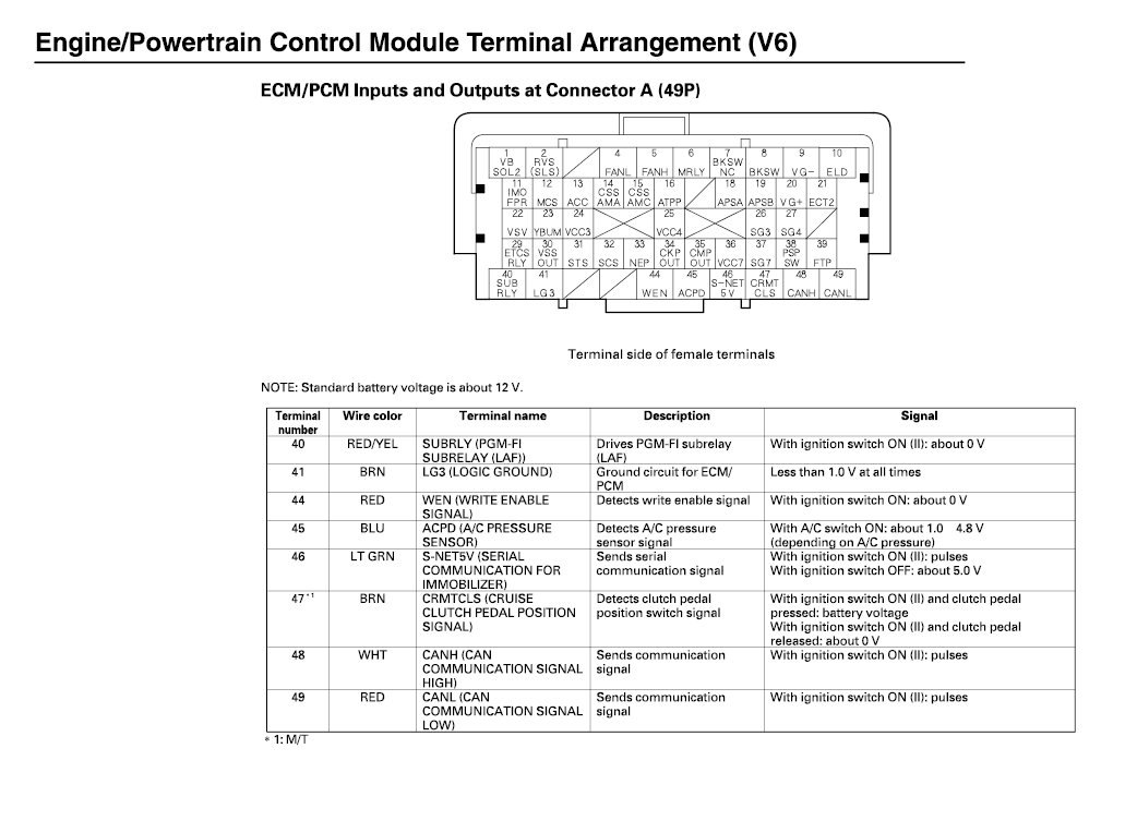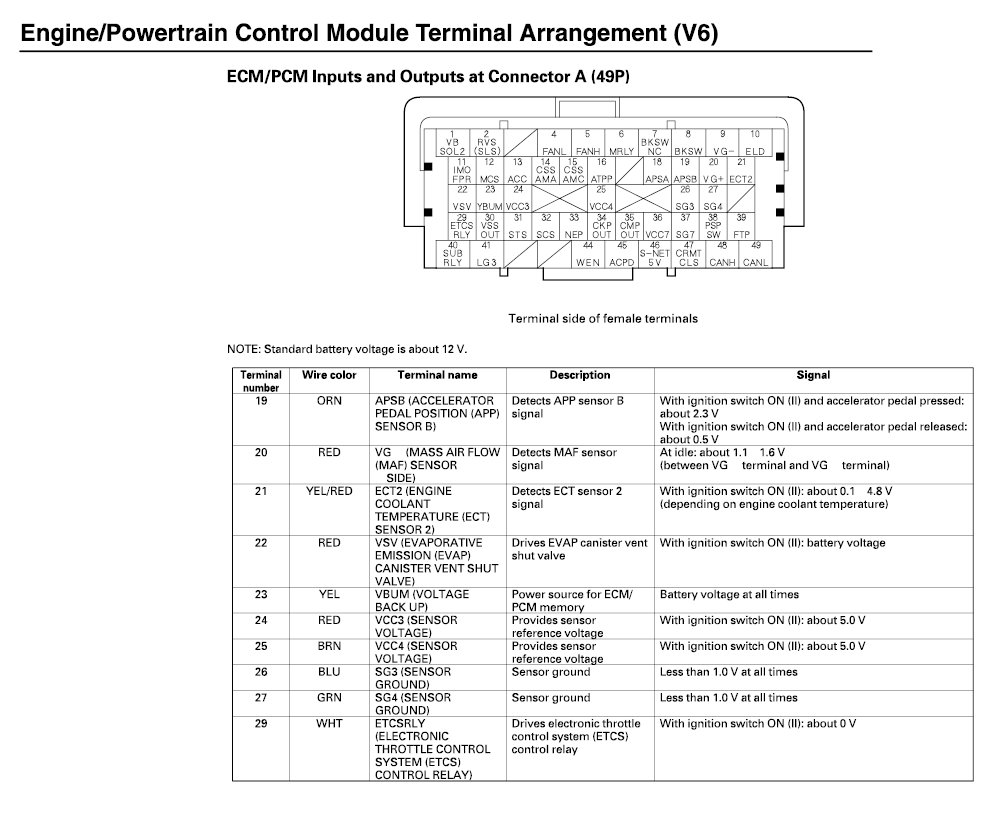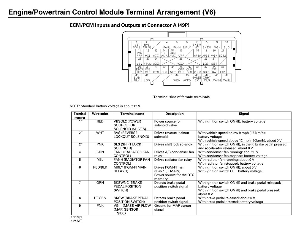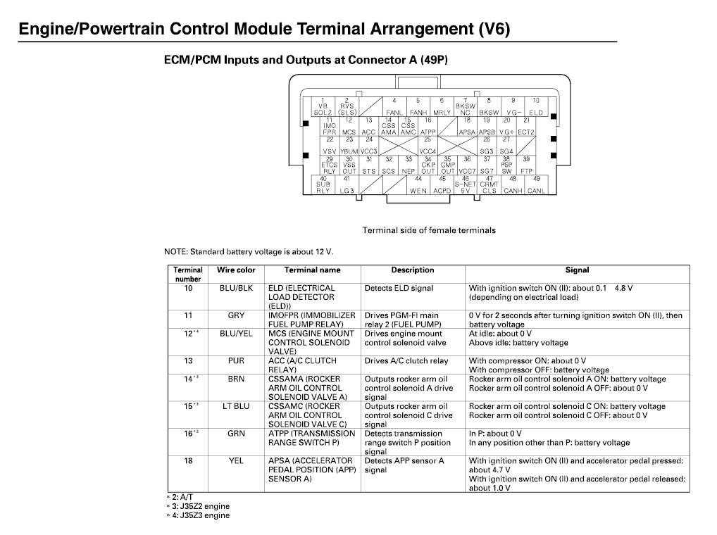 ECM/PCM Inputs And Outputs At Connector A