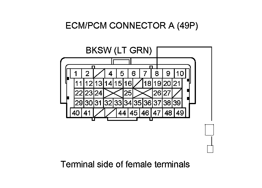 8. Check for continuity between ECM/PCM connector terminal A8 and body ground.
