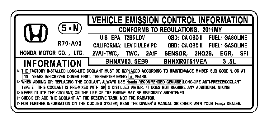Under-Hood Emission Control Label