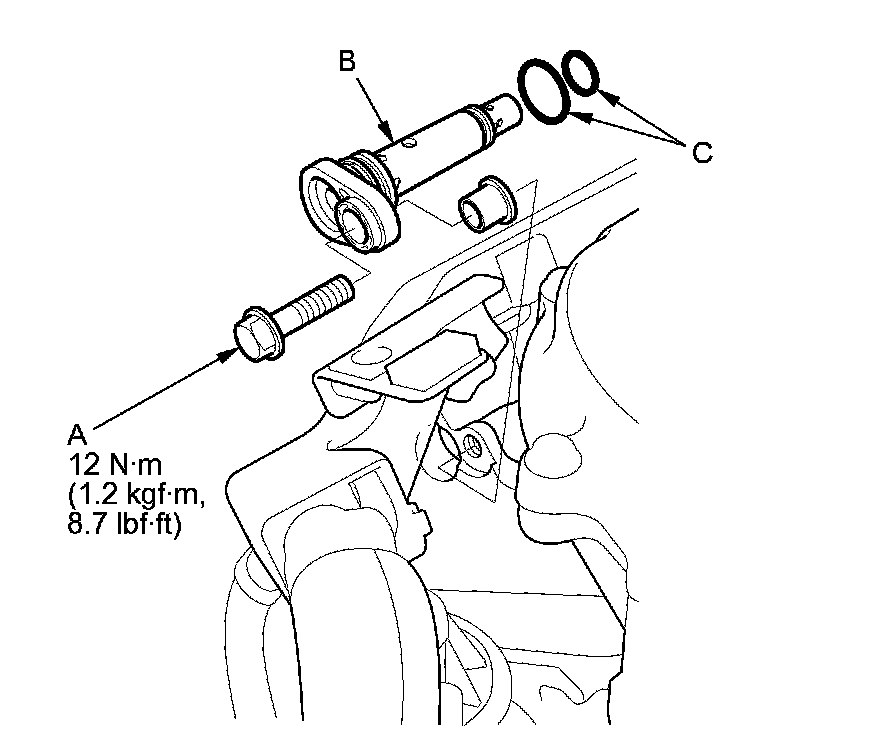 - When installing a new PCV valve, make sure the O-rings (C) are in place.