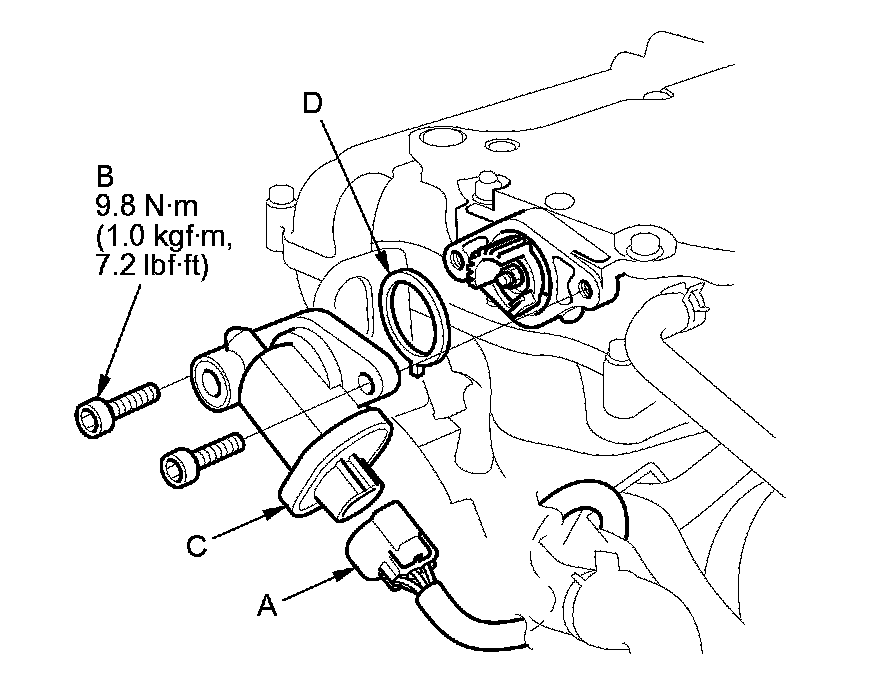 4. Install the parts in the reverse order of removal with a new O-ring (D).