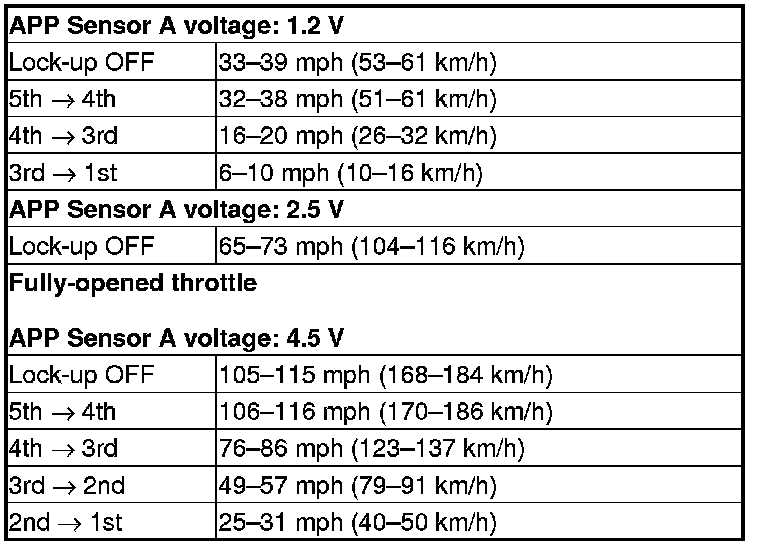 10. Monitor the HDS, and accelerate quickly until the APP Sensor A reads 1.2 V. Maintain a steady throttle until the transmission shifts to 5th gear, then slow the vehicle and come to a stop.