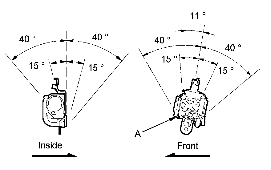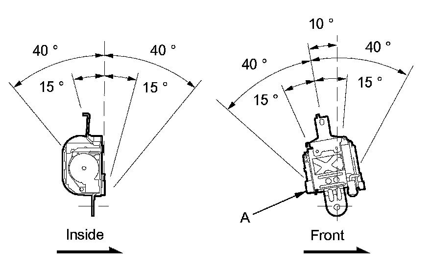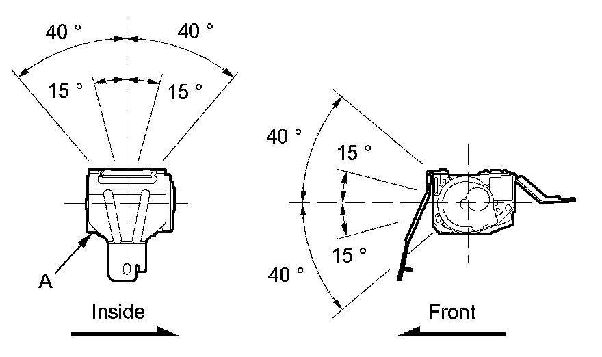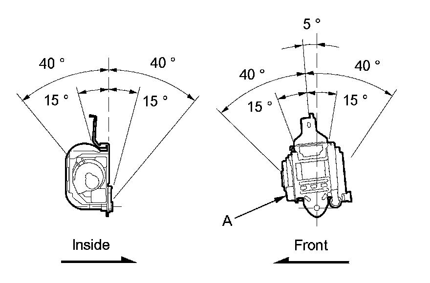 2. Make sure that the seat belt does not lock when the retractor (A) is leaned slowly up to 15 ° from the mounted position. The seat belt should lock when the retractor is leaned over 40 °. Do not attempt to disassemble the retractor.