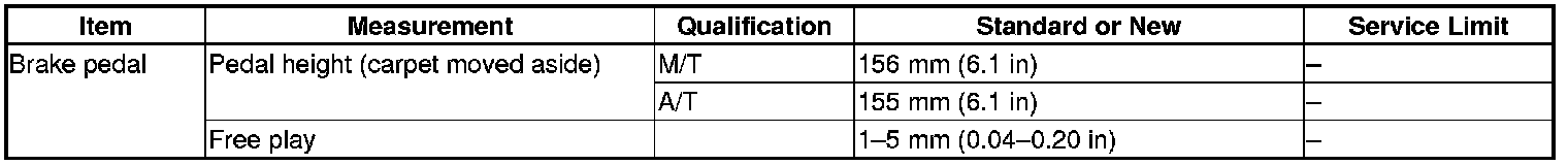 Brake Pedal Specification(s)