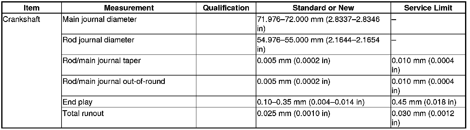 Crankshaft Specification(s)