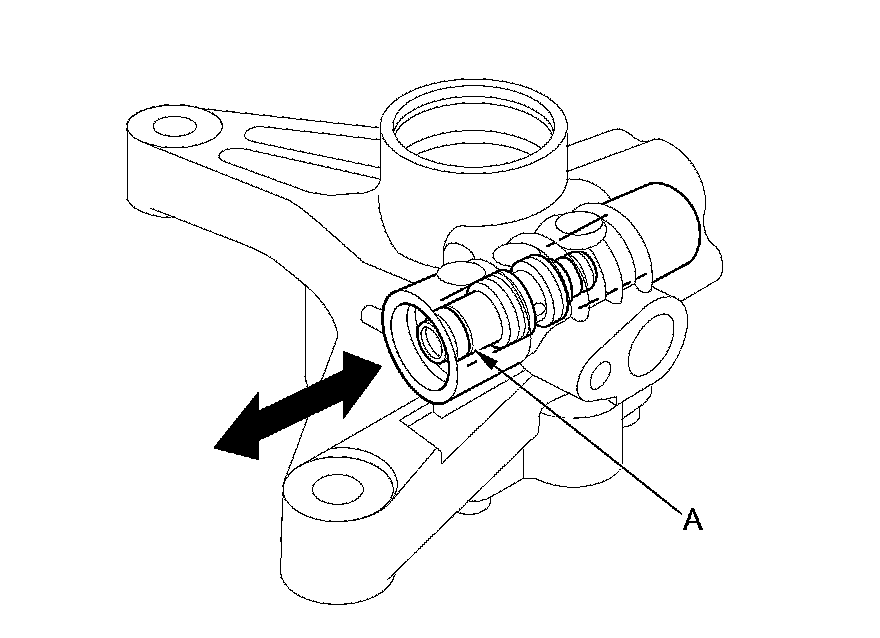 13. Slip the flow control valve (A) back in the pump housing, and check that it moves in and out smoothly. If OK, go to step 14; if not, replace the pump as an assembly. The flow control valve is not available separately.