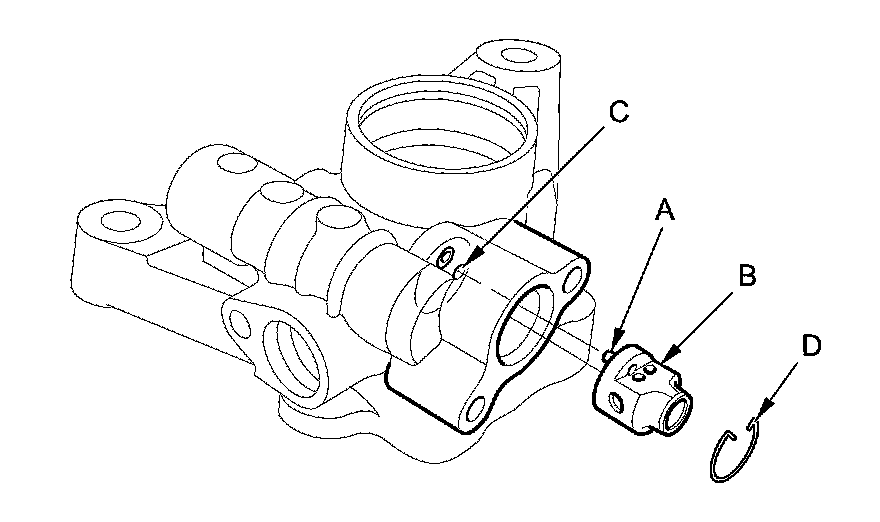 17. Align the pin (A) of the subvalve (B) with the oil passage (C) in the pump housing, and push the subvalve into place, then install the snap ring (D).