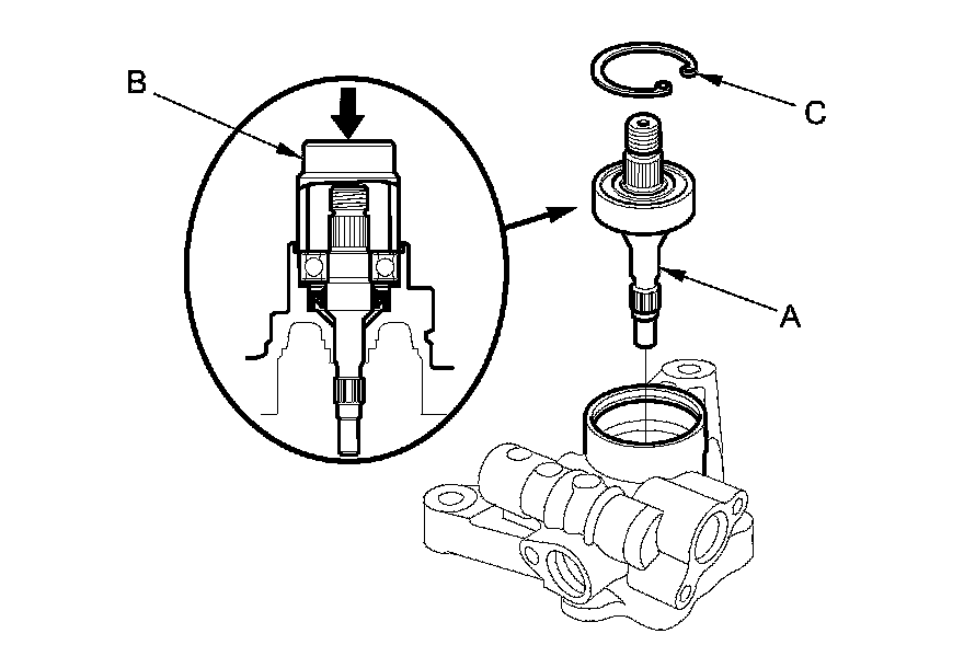 20. Install the 40 mm snap ring (C) with its beveled edge facing out.