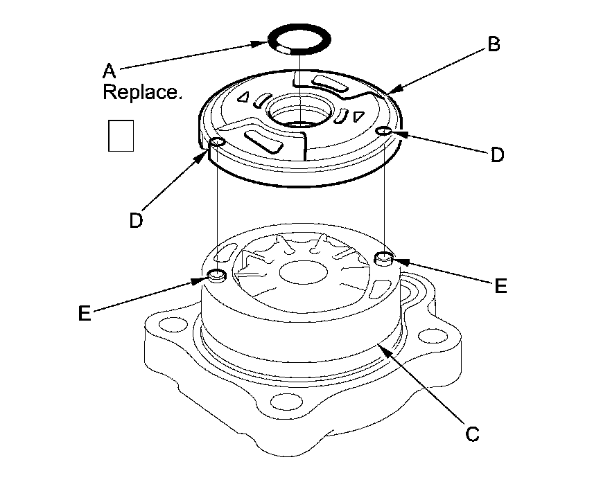 7. Remove the outer side plate, the cam ring, the rotor, the vanes, the side plate and the 15.2 mm O-rings.