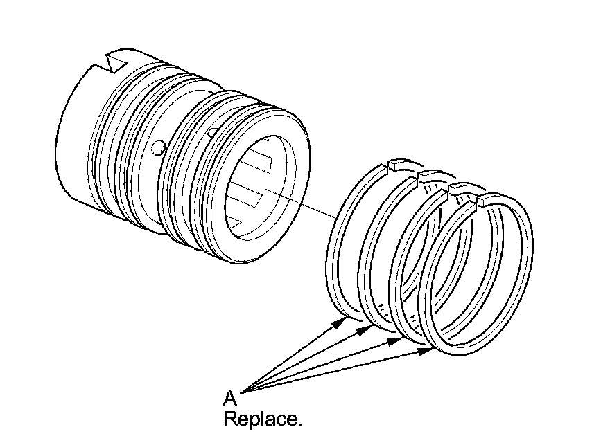 28. Using a cutter or an equivalent tool, cut and remove the four seal rings (A) from the sleeve. Be careful not to damage the edges of the sleeve grooves and outer surface when removing the seal rings.