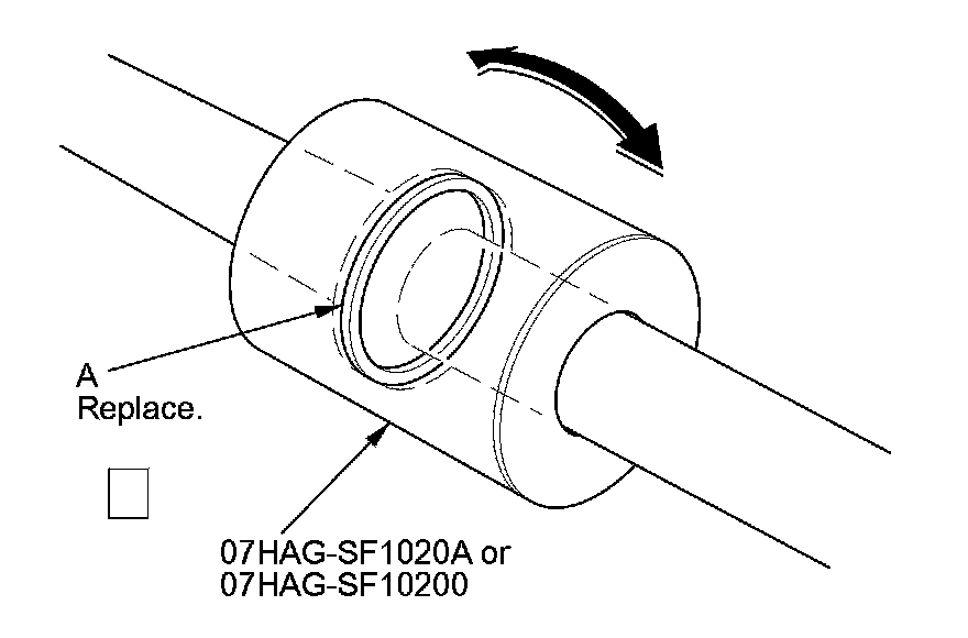 21. Turn the cylinder end seal remover attachment so it fits through the rack guide hole of the gearbox housing, then position the seal remover on the backup ring (A). Make sure that the seal remover is securely positioned on the backup ring.