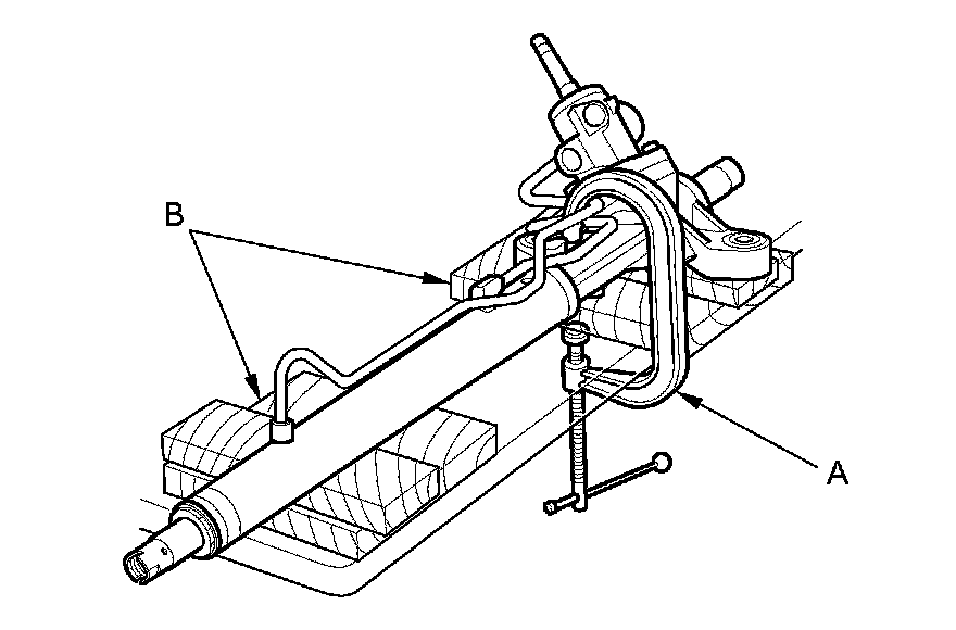 5. Remove the boot bands (A) and tie-rod clips (B). Pull the boot away from the ends of the steering gearbox.