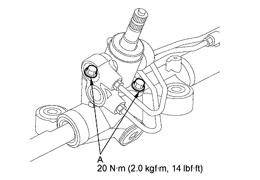 76. Bend the lock washer (A) back against the flat spots on the rack end joint housing.