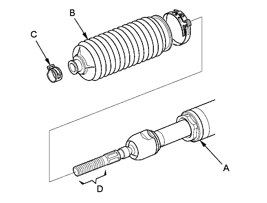85. After installing the boots, wipe the grease off the threaded section (D) of the rack end.