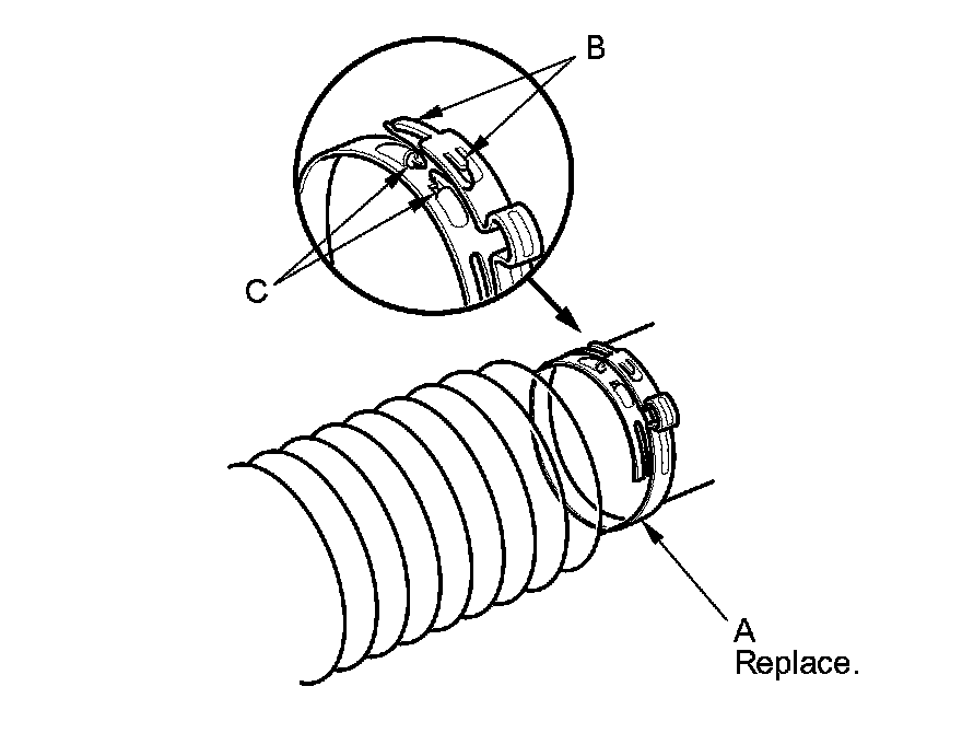 86. Install the new boot bands (A) by aligning the tabs (B) with the holes (C) on the band.