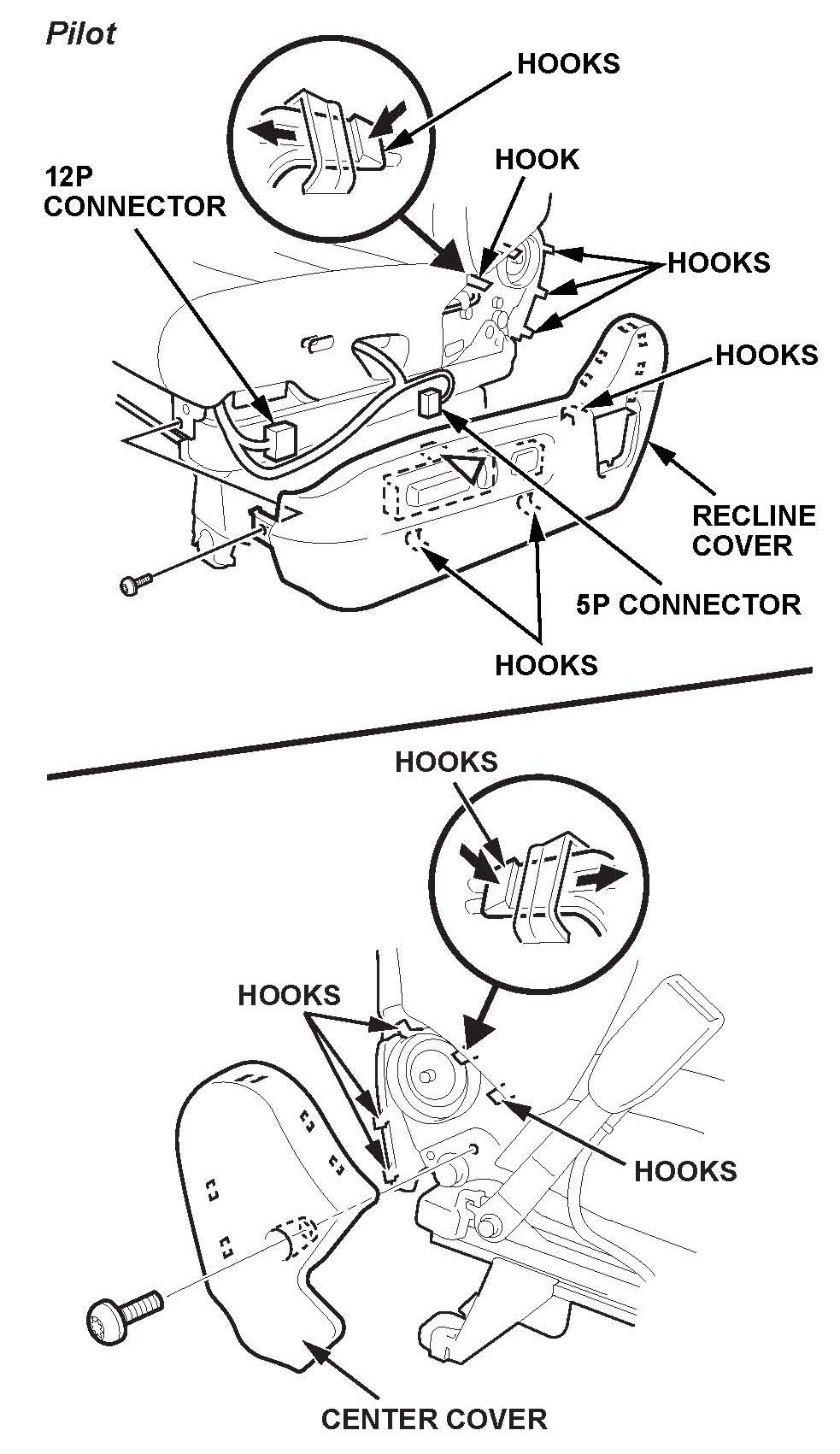 14. Pilot only: Remove the center cover, and the left and right recline covers.