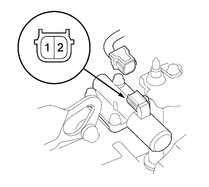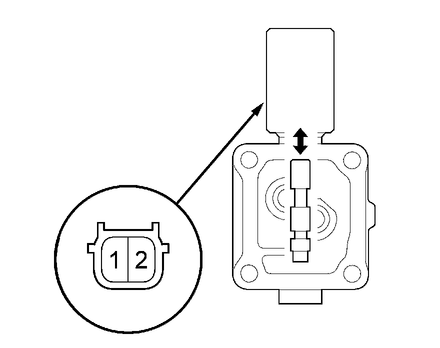 12. Connect a jumper wire from the negative battery terminal to A/T clutch pressure control solenoid valve C connector terminal No. 2, and connect another jumper wire from the positive battery terminal to connector terminal No. 1. Make sure A/T clutch pressure control solenoid valve C moves.