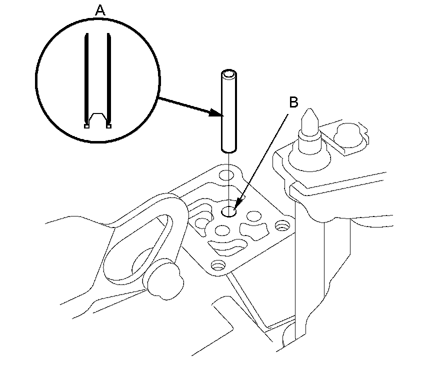 15. Install the 8 x 53 mm ATF joint pipe (A) with the filter end into its mounting hole (B).