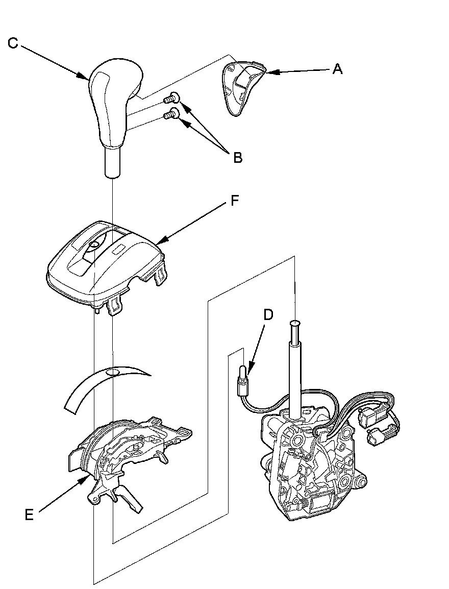 2. Remove the shift lever assembly A/T Shift Lever Removal.