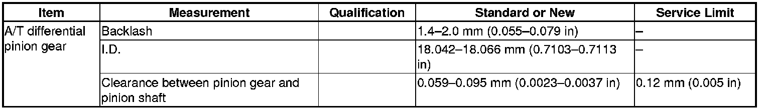 A/T Differential Pinion Gear Specification(s) (A/T)