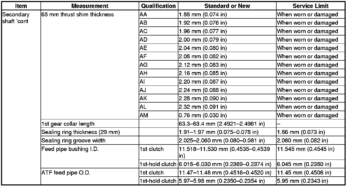 Secondary Shaft Specification(s) (A/T)