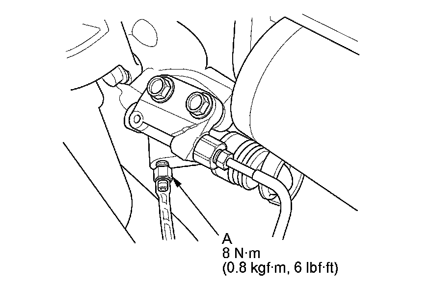 3. Attach one end of a clear tube to the bleeder screw (A), and put the other end into a container. Loosen the bleeder screw to allow air to escape from the system.