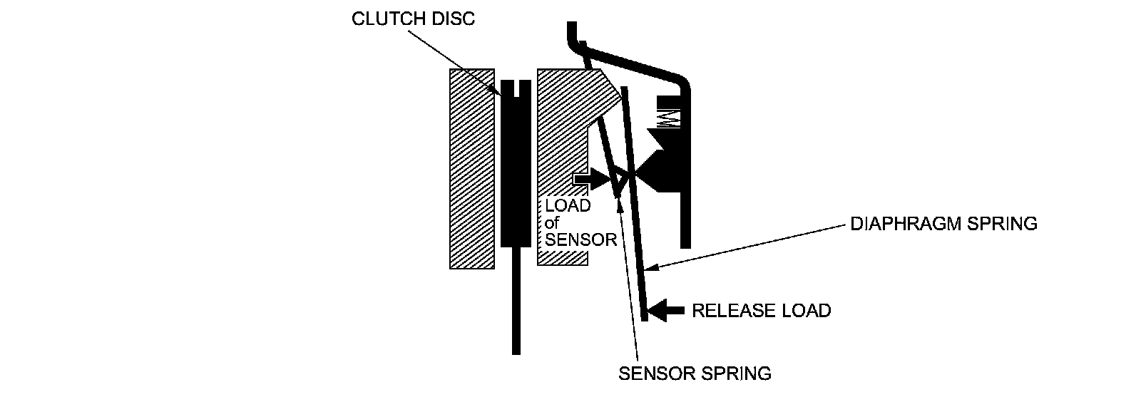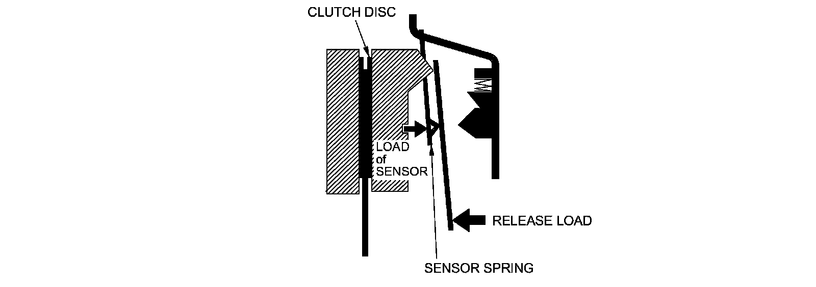 As the clutch begins to wear, the release load increases slightly. However, this does not affect the operation of the clutch because the release load does not exceed that of the sensor.