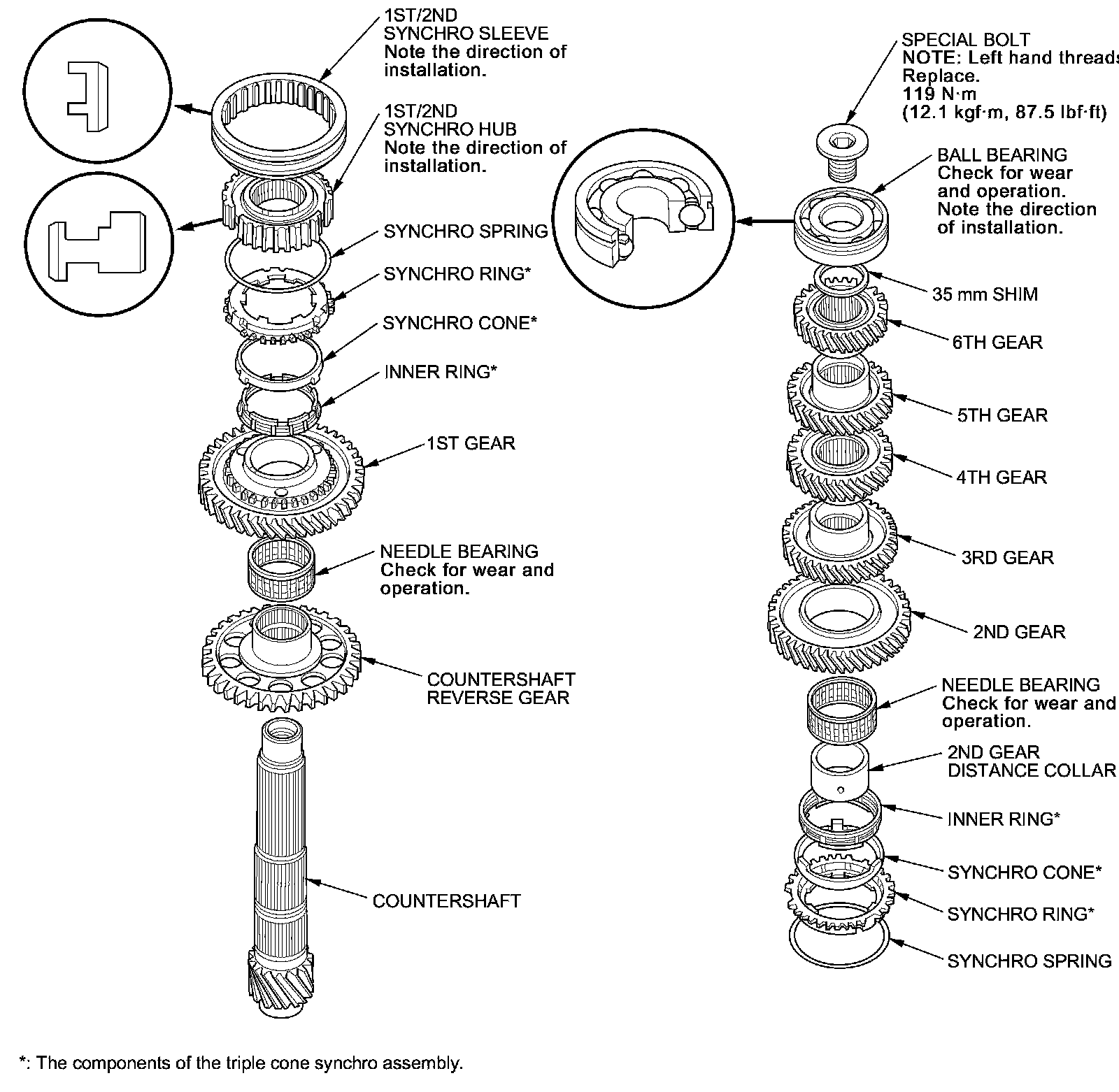 - If necessary, replace the 35 mm shim with the correct one selected in step 15 M/T Countershaft Reassembly.