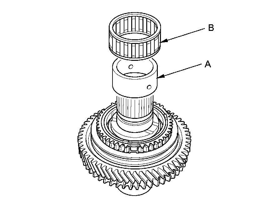 7. Install the 2nd gear distance collar (A) with the needle bearing (B).
