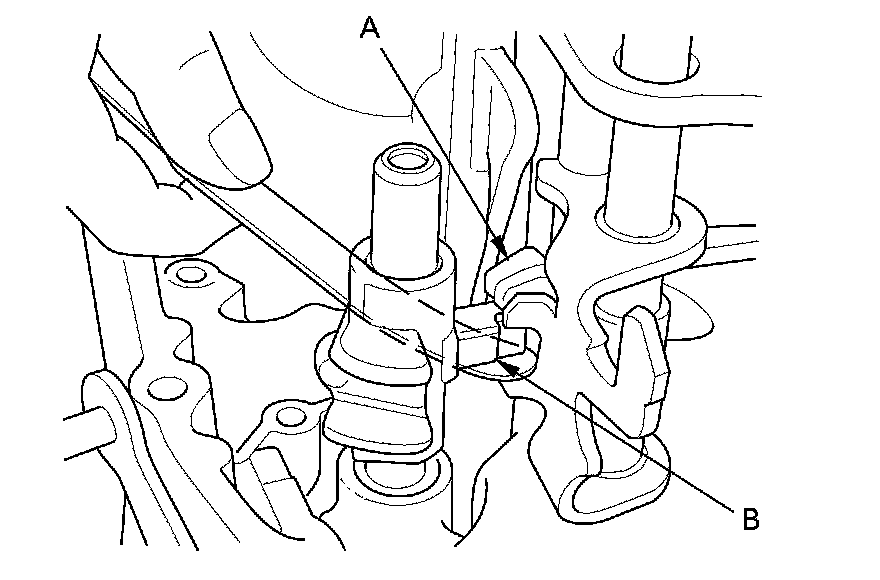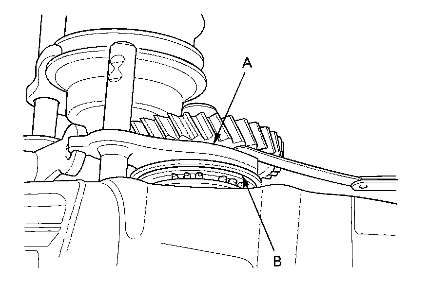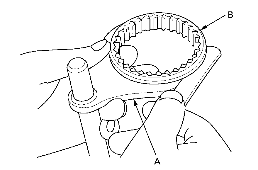1. Measure the clearance between each shift fork (A) and its matching synchro sleeve (B). If the clearance exceeds the service limit, go to step 2.