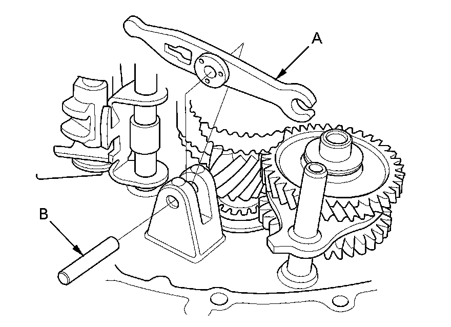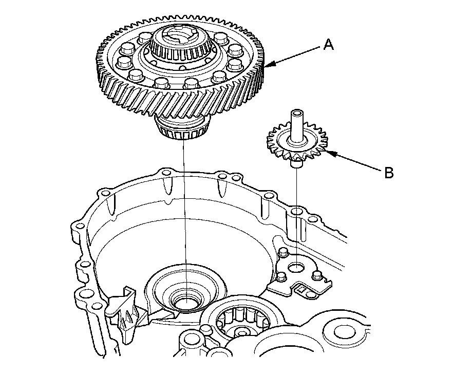5. Install the differential assembly (A) and the oil pump shaft (B).