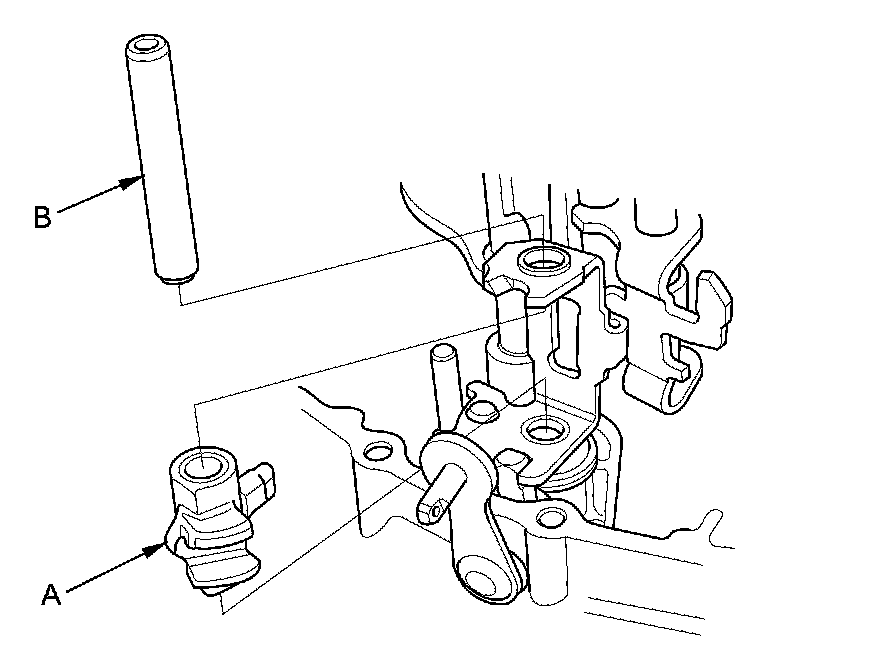 10. Install the shift piece (A) and the shift piece shaft (B).