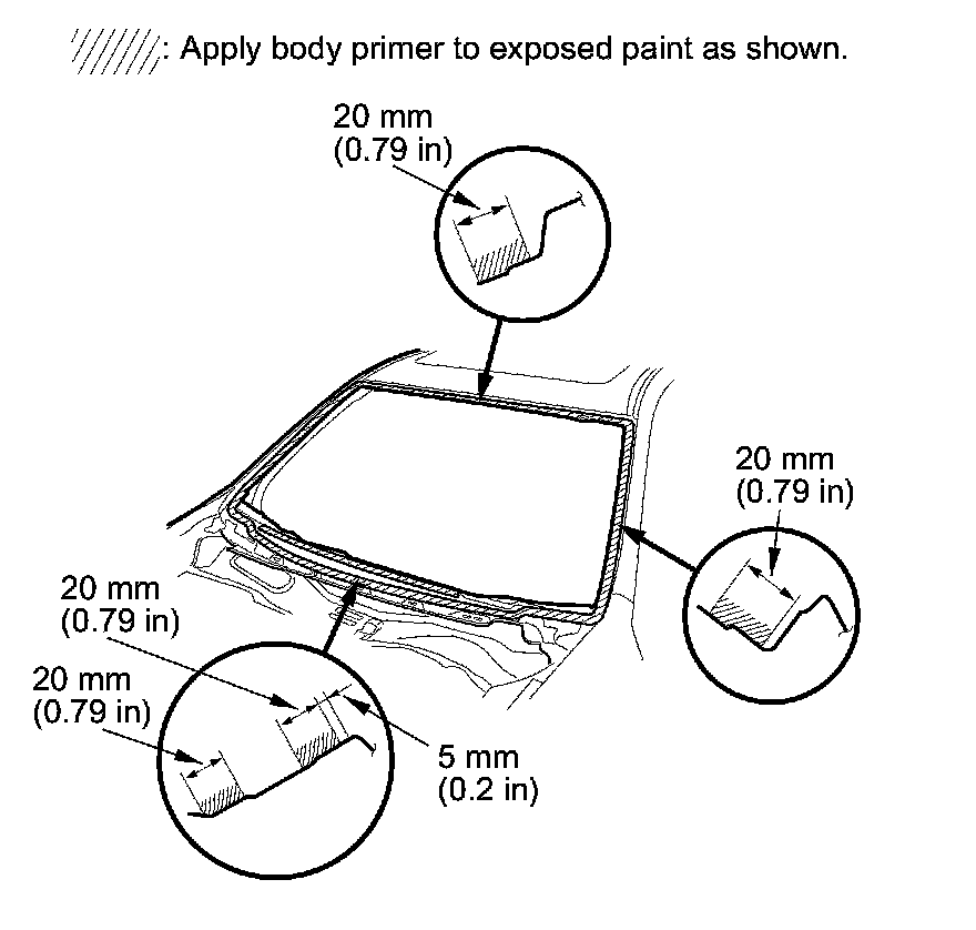 - Never touch the primed surfaces with your hands. If you do, adhesive may not bond to the windshield properly, causing a leak after the windshield is installed.