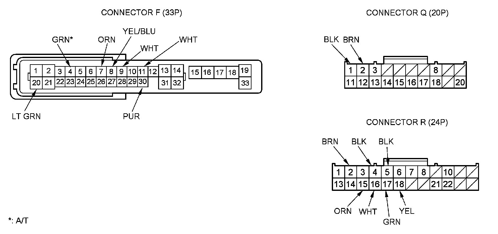 2. Disconnect driver's under-dash fuse/relay box connectors F, Q, and R.