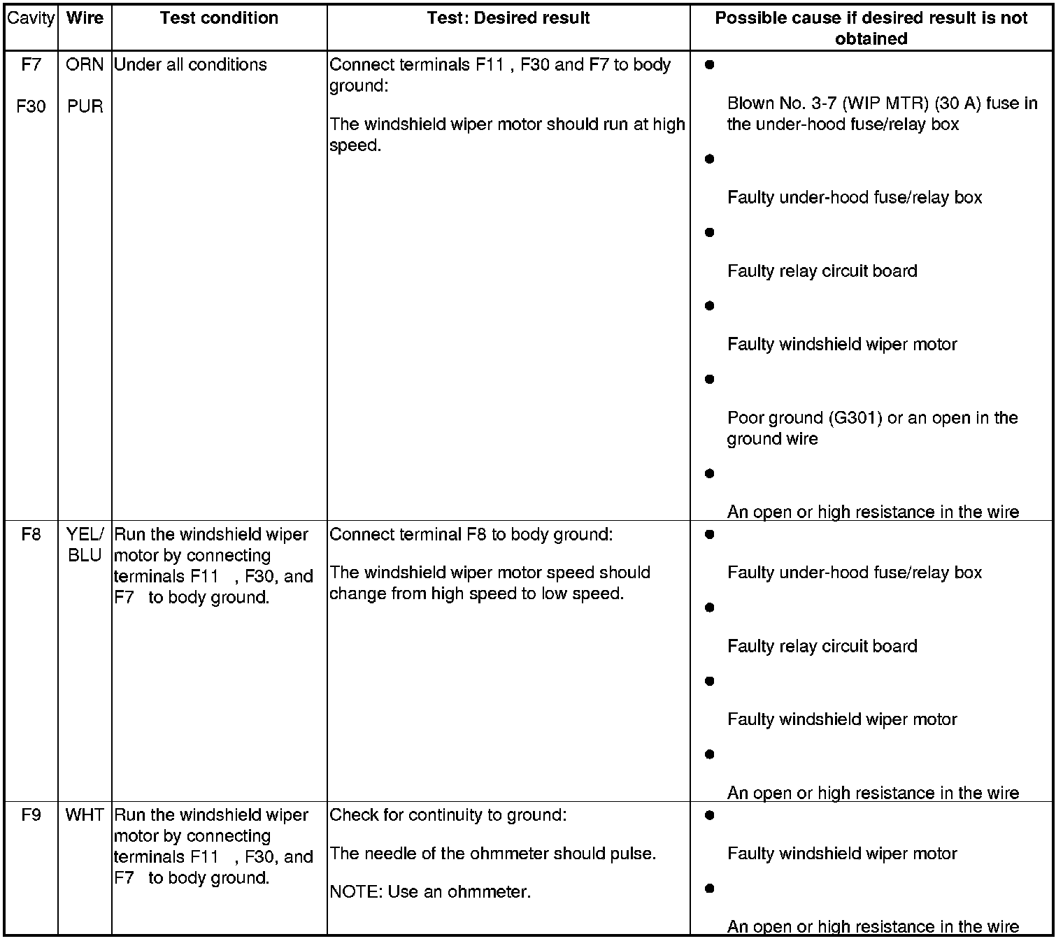 Wipers/Washers (Driver's and Passenger's MICU) Input Test