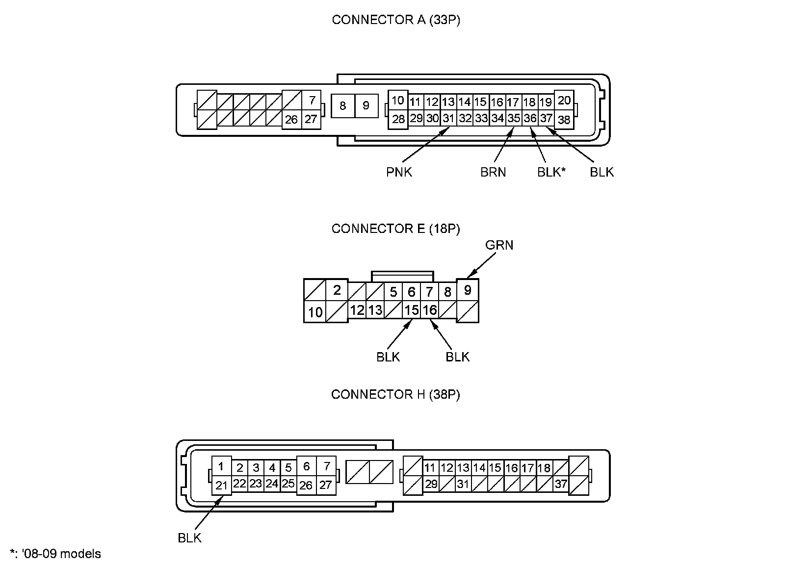 NOTE: Before testing, troubleshoot the multiplex integrated control unit first, using B-CAN System Diagnosis Test Mode A Troubleshooting - B-CAN System Diagnosis Test Mode A.