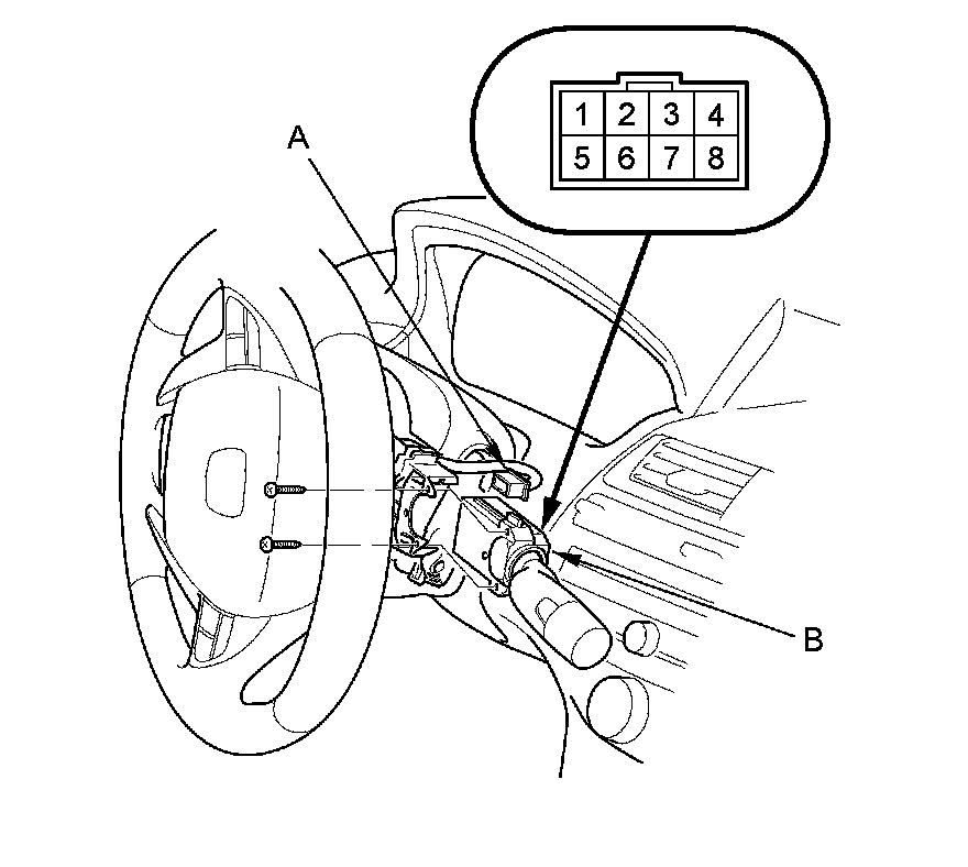 2. Disconnect the dashboard wire harness 8P connector (A) from the wiper/washer switch (B).