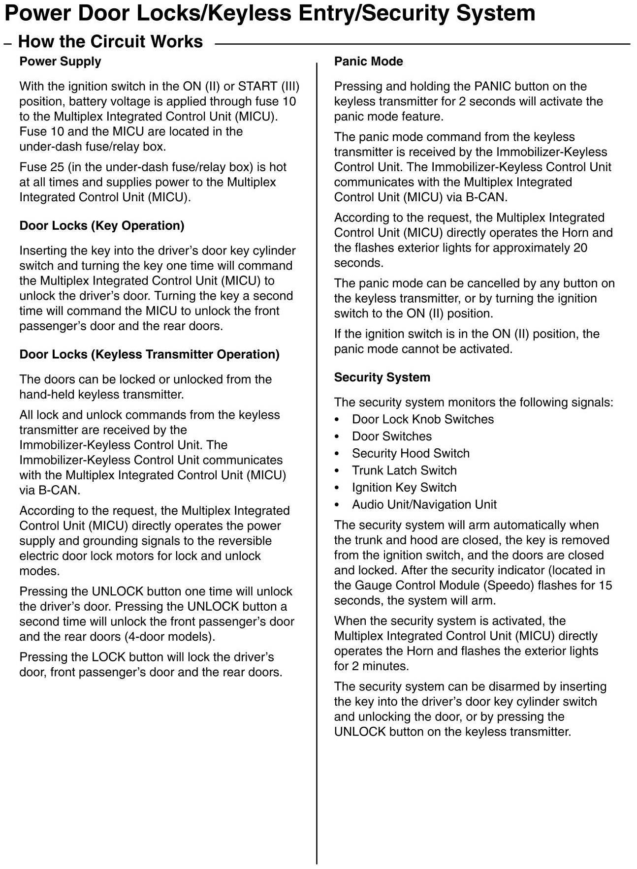 How The Power Door Locks/Keyless Entry/Security System Circuit Works