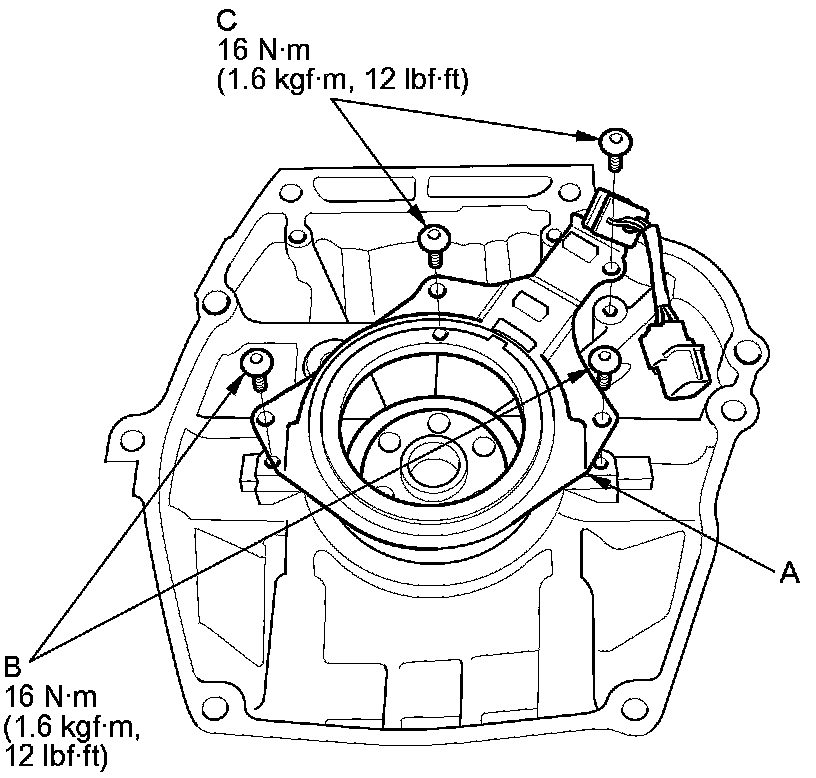 NOTE: Tighten the bolts (B) first, then tighten the bolts (C).