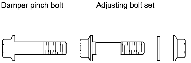 - The camber angle can be adjusted up to ±20 ' (center of tolerance) by replacing one damper pinch bolt with the adjusting bolt.