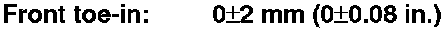 The suspension can be adjusted for front camber, front toe, and rear toe. However, each of these adjustments are related to each other. For example, when you adjust camber, the toe will change. Therefore, you must adjust the front wheel alignment whenever you adjust camber or toe.