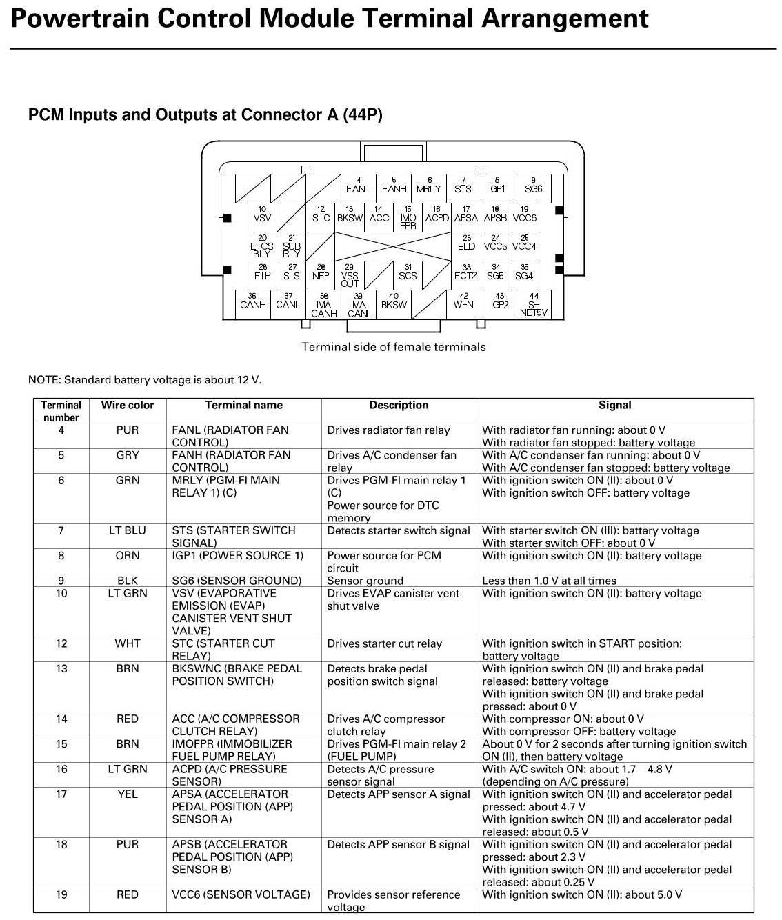 PCM Inputs And Outputs At Connector A