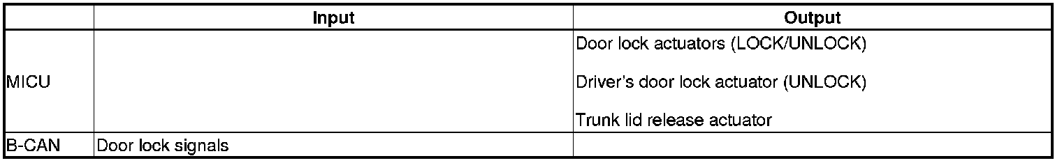 The MICU control of the door lock actuators is based on B-CAN signals and inputs from each switch.