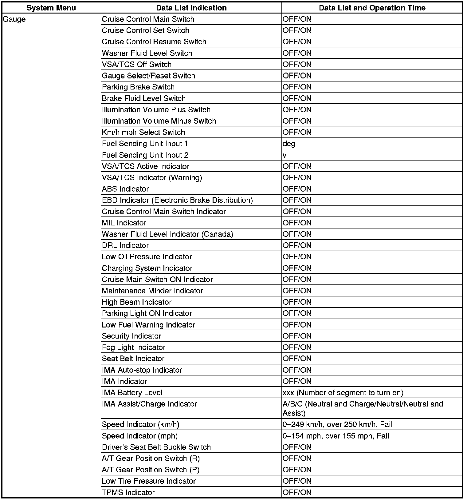 The body controller area network (B-CAN) and the fast controller area network (F-CAN) share information between multiple electronic control units (ECUs). B-CAN communication moves at a slower speed (33.33 kbps) for convenience related items and for other functions. F-CAN information moves at a faster speed (500 kbps) for "real time" functions such as fuel and emissions data. To allow both systems to share information, the gauge control module translates and relays the information from B-CAN to F-CAN and from F-CAN to B-CAN. This is called the Gateway Function.