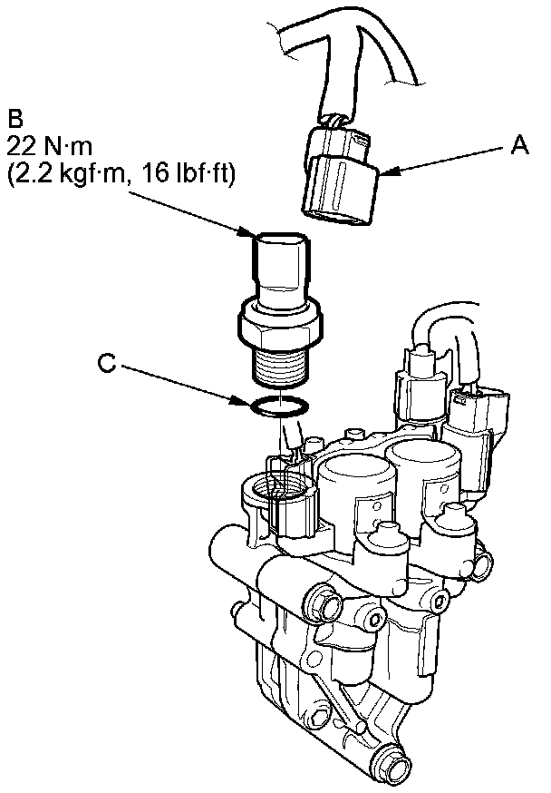 3. Install the parts in the reverse order of removal with a new O-ring (C).